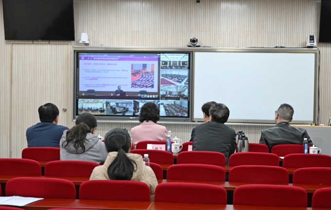3月14日,全省教育系统传达学习贯彻全国两会精神会议在宁召开。会议认真落实我省传达学习贯彻全国两会精神会议的部署要求,邀请全国政协常委、中国科学院院士、南京大学党委书记谭铁牛,全国人大代表、扬州大学党委书记丁建宁传达习近平总书记参加十四届全国人大三次会议江苏代表团审议,看望参加全国政协十四届三次会议的民盟、民进、教育界委员并参加联组会时的重要讲话精神和全国两会精神。省委教育工委副书记潘漫主持会议。学校理事长金秋萍,党委书记孙玉坤,校长金成,校领导吴健荣、丁涛、陈鹏飞、毛照红,党委委员凌晨、吴学林在校通过视频形式参加会议。
