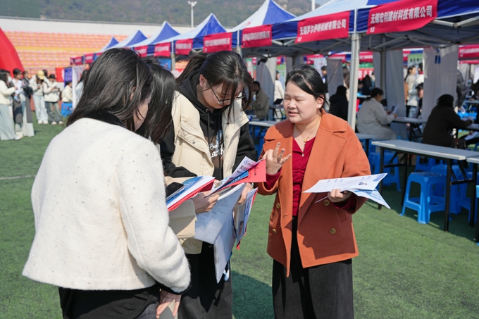 3月20日,beat365在线唯一官网2025届毕业生春季校园大型招聘会在学校田径场举行。无锡威孚高科技集团、江苏特丽亮新材料科技有限公司、华翊数智(无锡)互联科技有限公司等350多家用人单位提供就业岗位6000余个,参会单位涵盖高端装备制造、新兴数字产业等多个领域,招聘专业涉及物联网、计算机科学与技术、机械工程、国际经济与贸易等,吸引2025届毕业生和部分非毕业年级学生共5000多名来到现场洽谈咨询。