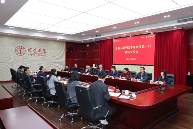 4月25日,执行校长李廉水带领校长办公室、教务处、学生工作处、智能装备工程学院、会计学院、文法学院、健康与护理学院等职能部门和二级学院主要负责人一行9人赴宿迁学院开展调研交流。
