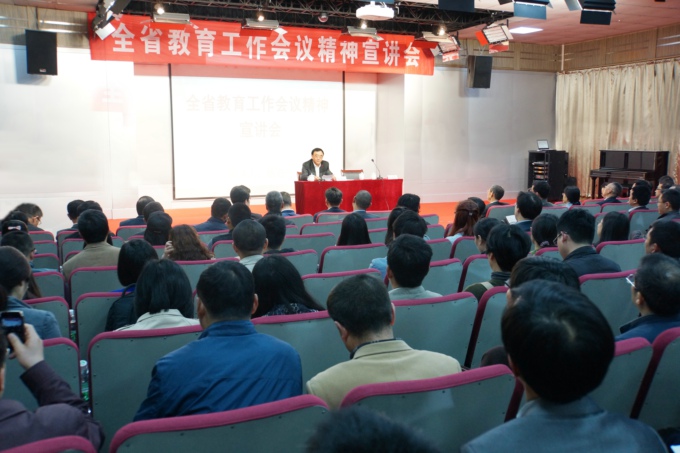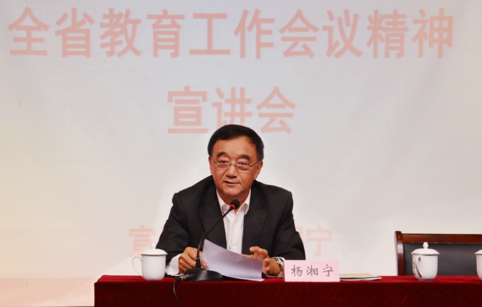 在宣讲中,杨湘宁首先传达了罗志军书记、石泰峰省长的讲话精神,阐释了全省教育工作会议的重点内容和重大意义;着重对《关于深入推进教育现代化建设,努力办好人民满意教育的意见》作了解读。对全省高校学习贯彻全省教育工作会议精神,杨湘宁提出了四点意见:一要精心组织安排,广泛深入地学习宣传;二要制定实施方案,强化政策制度的创新;三要坚持联系实际,推动教育重点工作;四要加强组织领导,统筹推进贯彻落实。