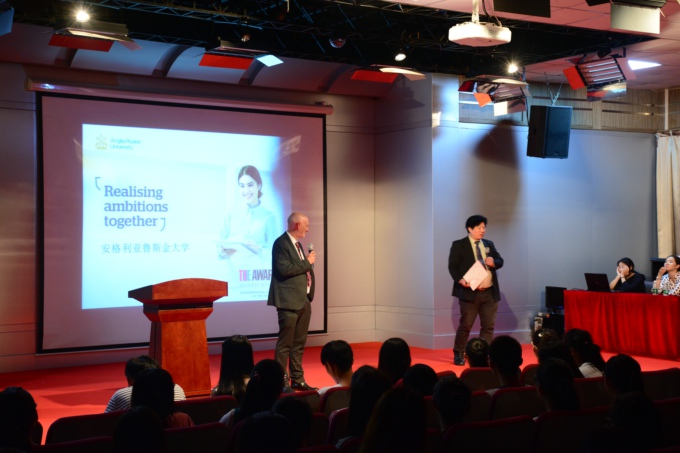 英国安格利亚鲁斯金大学已受我国教育部认证,与我国教育交流合作广泛。这次安鲁大学ACCA项目专家、商学院国际合作负责人Dr.Simon Evans一行来到beat365官网后,在南区音乐中心报告厅举行了ACCA国际会计项目大型讲座,150多名来自各专业的2016级新生踊跃参加。多位英国专家学者向同学们介绍了安鲁大学的概况,对ACCA项目作了详细阐述,现场回答了许多同学的提问。安鲁大学中英合作和招生协调官林新法博士也对如何突破留学的瓶颈——语言作了生动有趣的演讲,同学们报以一阵阵热烈的掌声。