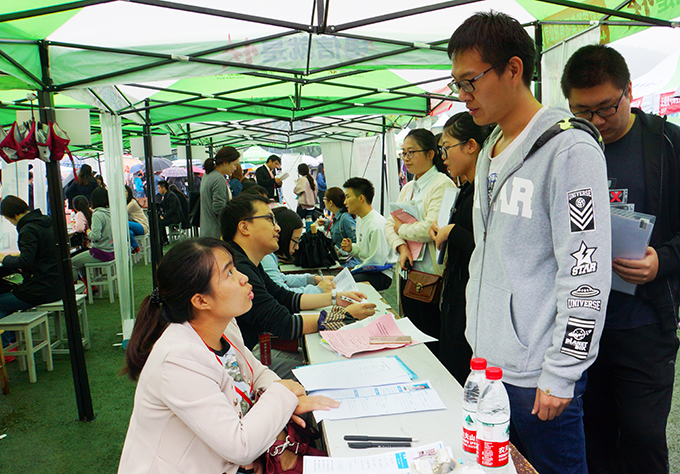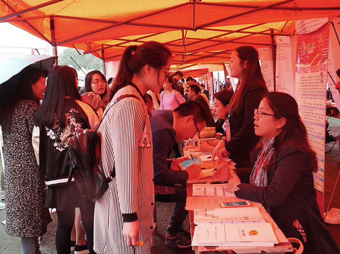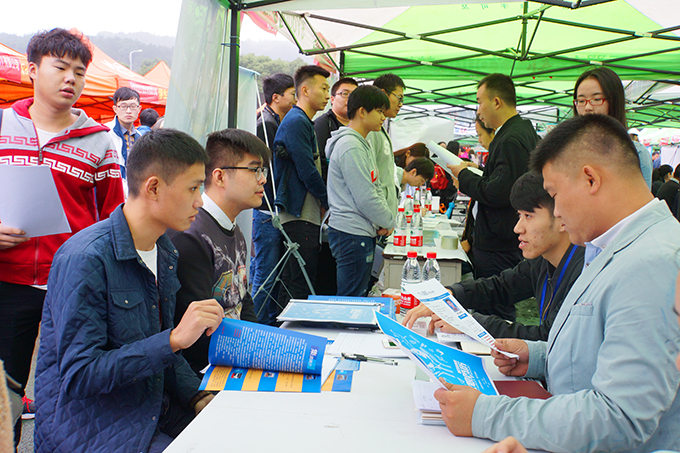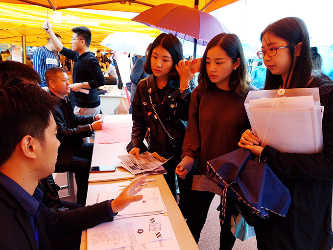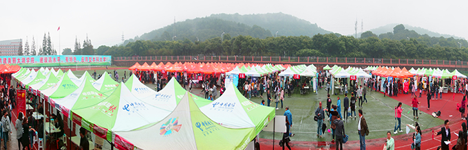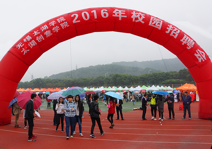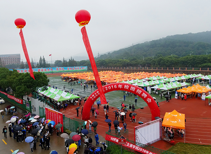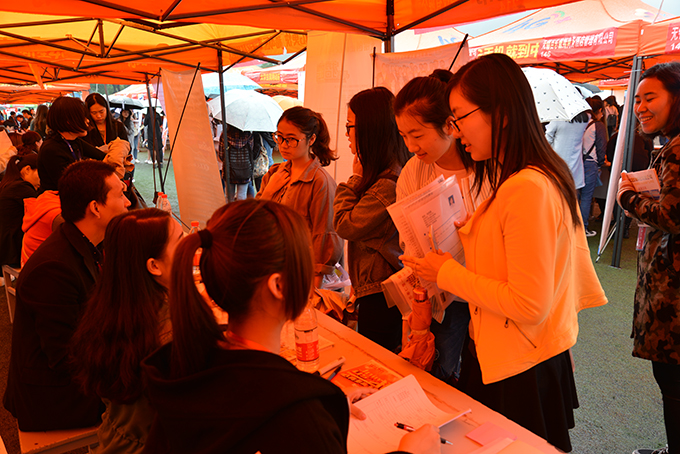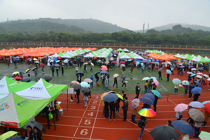 10月26日上午,beat365在线唯一官网南区运动场成了伞的海洋,红的、蓝的、黑的、各色雨伞在连排搭建的遮阳篷前缓缓移动。不期而至的小雨,挡不住用人企业求贤若渴的热情,正在这里举行的校园就业招聘会,吸引了beat365官网数千名大四学生。