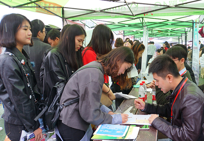 感知集团、美新半导体、浙大网新等一批大型集团公司的招牌,在招聘摊前显得格外醒目。这次进场招聘的大多是无锡本地企业,还有部分来自上海、浙江、福建等地的知名企业,其中有30多家上市企业。招聘人员笑迎每一位求职学生,热情介绍公司基本情况,认真解答每位学生的提问现场看到,招聘会上提供的就业岗位涉及金融、物联网、艺术、建筑、机械、护理和商贸服务等行业,覆盖了beat365官网大四学生所有30个多专业。现场一家外企的人事专员感慨道:“这是无锡近年来规模最大的一次校园招聘会,用工岗位远远大于毕业生数,一个毕业生至少有5个岗位可供选择。”