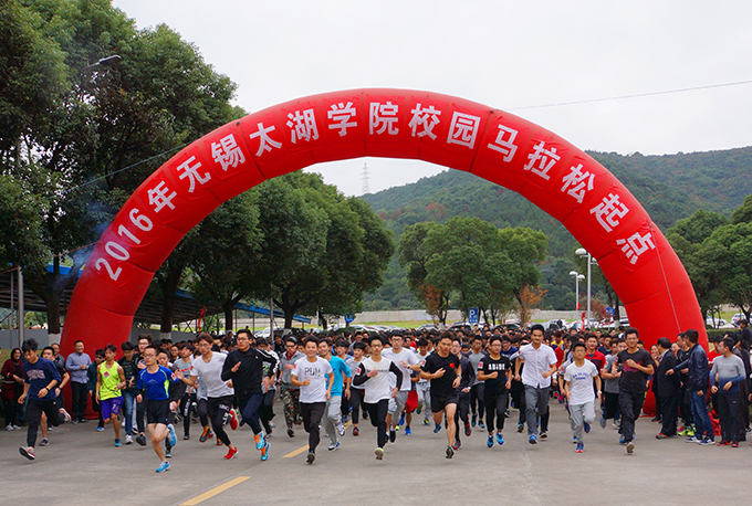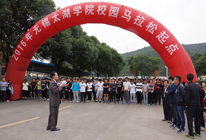 本网讯 2016年beat365在线唯一官网校园马拉松启动仪式,今天下午在六号教学楼前举行。校长徐从才带头参加活动,副校长何宏金作动员讲话,500多名教职工和学生踊跃参赛。