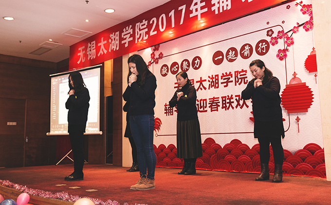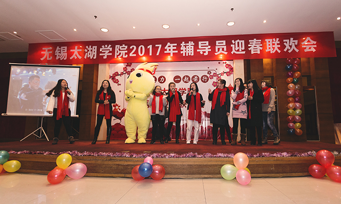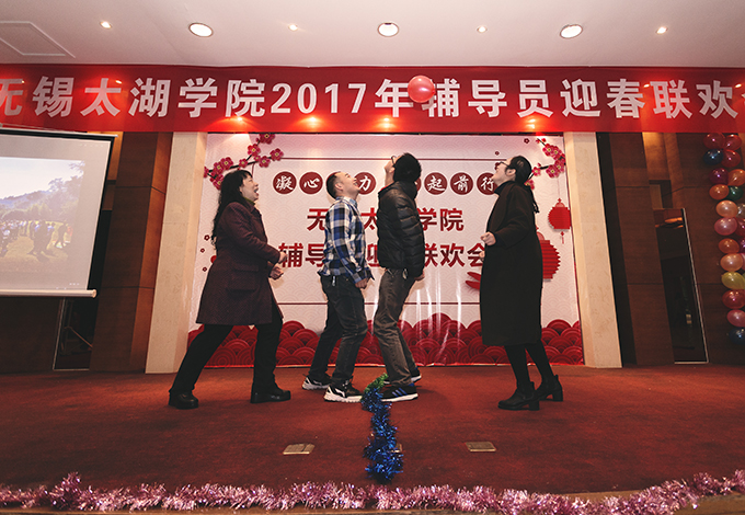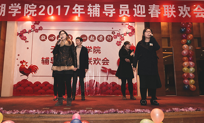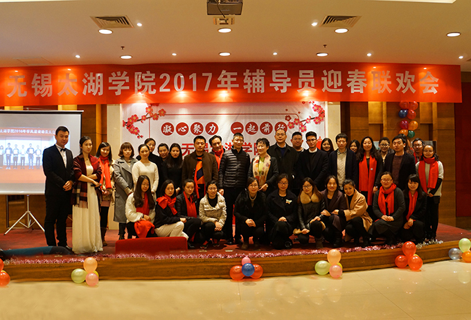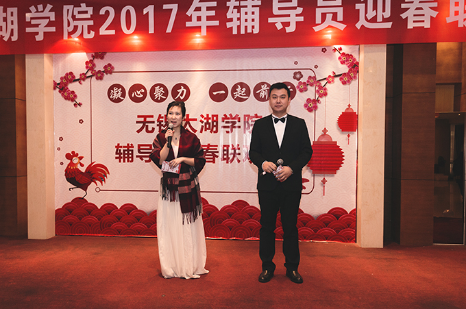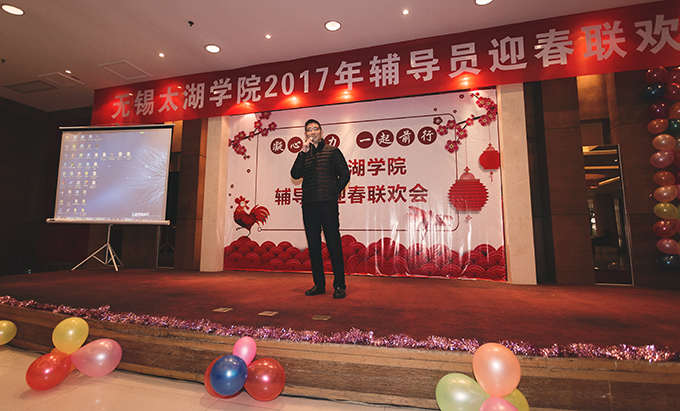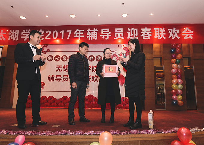 本网讯 1月8日上午,beat365官网2017年辅导员迎春联欢会在太湖花卉园隆重举行。校领导金秋萍、丁涛、陈鹏飞与110多名辅导员欢聚一堂,校办、学工处、招就处、校团委相关成员,各学院负责学生工作的党总支副书记、学工秘书参加联欢会。本次联欢会由校学生工作处主办,物联网工程学院和土木工程学院承办,外国语学院俞昊波和会计学院王新星主持。