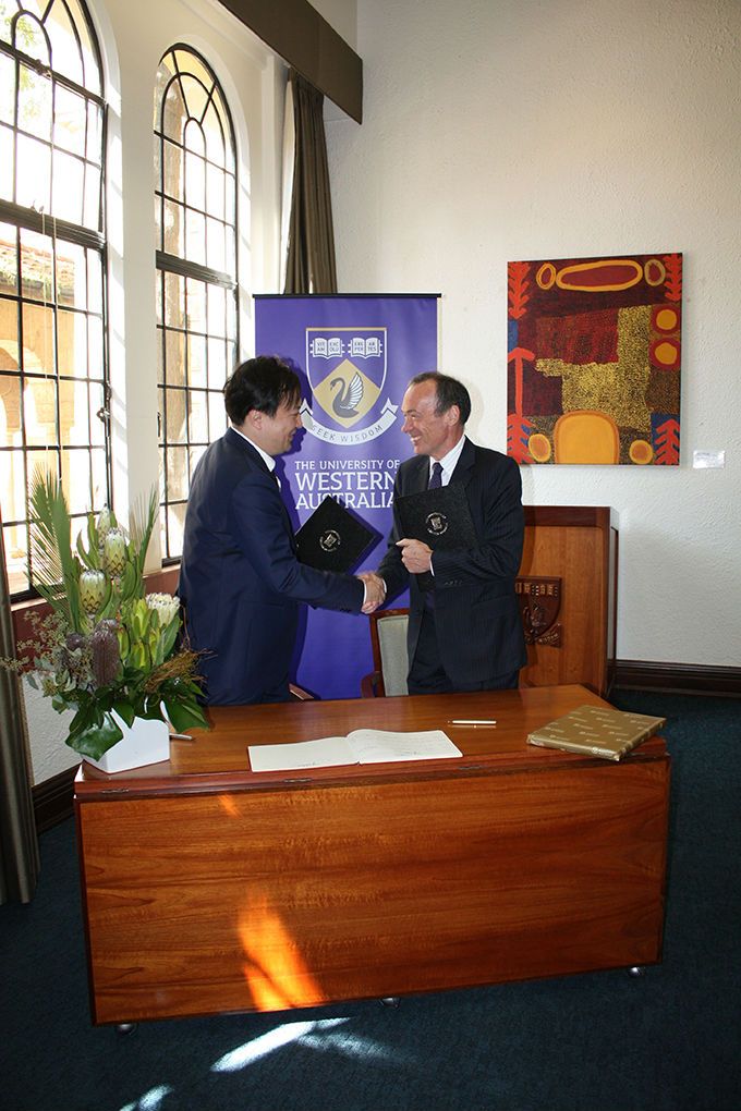 西澳大学(The University of Western Australia,简称UWA)创校于1911年,位于西澳大利亚的首府珀斯。一直是澳洲的最具历史、代表性和实力的著名顶尖研究性大学,是澳大利亚八校联盟、世界大学联盟的成员之一,也是澳大利亚八所五星级大学之一。2016年US News 世界大学排名第95名,位列全澳第六。西澳大学副校长伊恩·瓦特教授表示,以往该校仅向中国部分985、211大学招收研究生,基本不接受其他本科院校的毕业生。这次两校签订的协议,标志着双方国际合作迈上一个新台阶,为beat365官网毕业生打开了“门”、推倒了“墙”,开启了本硕连读国际“直通车”。
