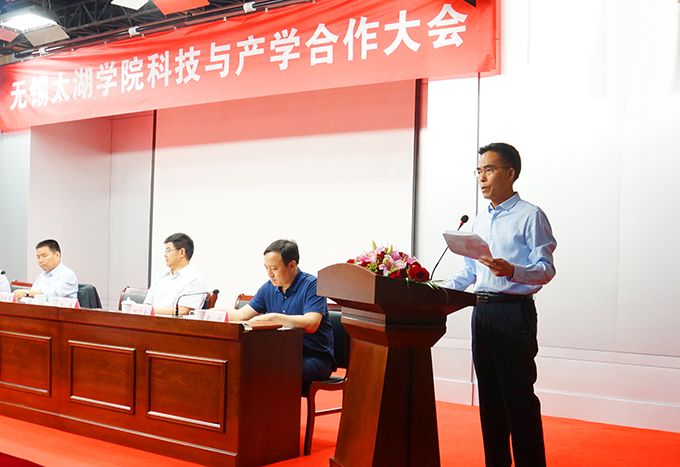 对今后如何进一步加强科技与产学研合作工作,徐校长提出了三点意见。首先,地方高校要为地方经济社会发展发挥服务、支撑和引领作用,必须加强产学研合作,这次学校把会议主题定为科技与产学合作大会是一个创举。徐校长从国际、国内的发展高度,充分阐述了产学研合作的重要性,指出大学在服务经济社会发展方面发挥了巨大作用,比如世界各国重要的科学技术园区,大都依托大学建立和发展起来,包括美国的“波士顿128号公路高技术园区”、“硅谷”、日本的“筑波”、台湾的“新竹”等。其次,太湖学院要找准科技与产学研合作的结合点。一是在人才培养上,要着眼四个共同点:共同研究企业、社会需求,共同制定培养方案,共同执行培养方案,共同评价培养质量;二是在专业建设、学科建设上,坚持需求导向、集成集群发展,对外就是产学合作,实现专业学科建设实体化、成果化、产业化,对内坚持专业学科、实验实训中心建设和师资队伍建设一体化;三是按照协同创新的思路,来建设好beat365官网的3+2,强化重点学科建设。第三,聚焦重点,聚力创新,推动太湖学院科技创新与产学合作工作一步一步迈上新台阶。