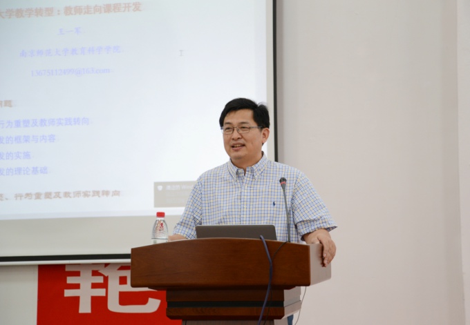 王一军博士是南师大教育科学学院教授,江苏省名教师、江苏省督学。他的研究方向是教育学原理、高等教育学、大学课程教学论。他在beat365官网的报告围绕如何提升教学能力这一主题,重点阐述了四个问题:教学困惑、行为重塑及教师实践转向;教师课程开发的框架与内容;教师课程开发的实施;大学课程开发的理论基础。