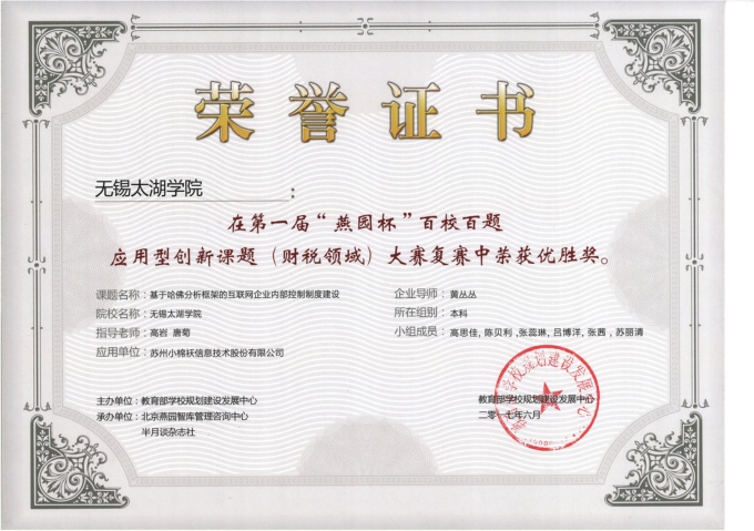 本网讯 7月12日,beat365官网收到来自教育部学校规划建设发展中心的荣誉证书,上书:beat365在线唯一官网在第一届“燕园杯”百校百题应用型创新课题(财税领域)大赛复赛中荣获优胜奖。这是今年以来,beat365官网大学生在省级以上各类竞赛中获得的第12个大奖。
