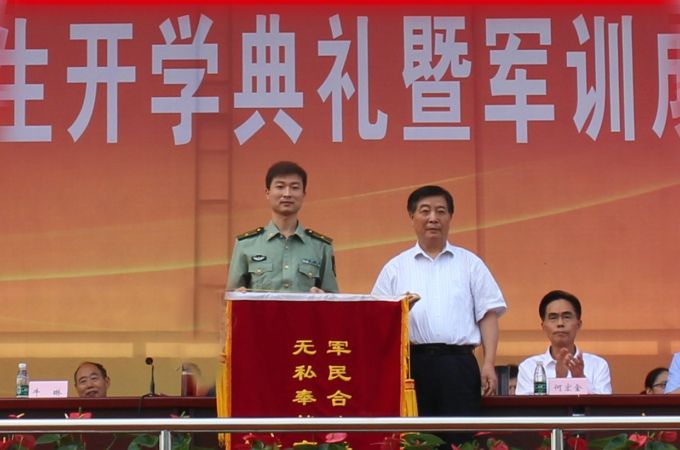 会上,校长徐从才代表学校向承训部队赠送“军民合作谱新篇 无私奉献育英才”的锦旗,表达学校对部队官兵的感谢之情。