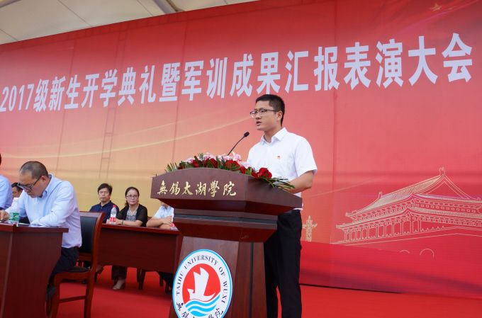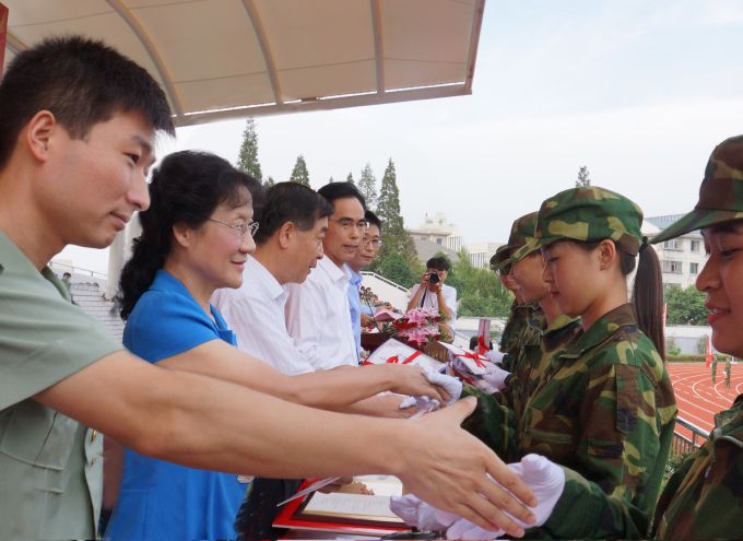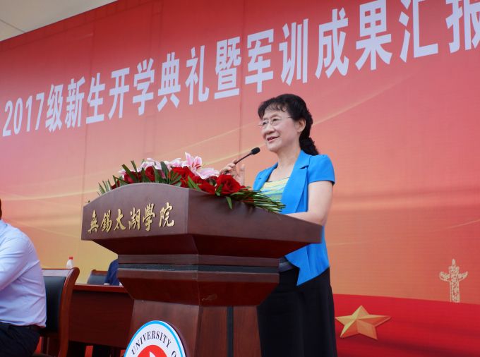 学校党委书记金秋萍作了热情洋溢的讲话。她代表学校向部队首长及全体教官表示崇高敬意,向来自全国27个省、市、自治区的同学们表示热烈欢迎。金秋萍书记说,太湖学院近年来瞄准建设高水平、有特色、国内一流应用型大学目标,不断优化专业结构,创新培养模式,深化教学改革,实施“强师工程”,今年学校已获批江苏省硕士学位授予立项建设单位。