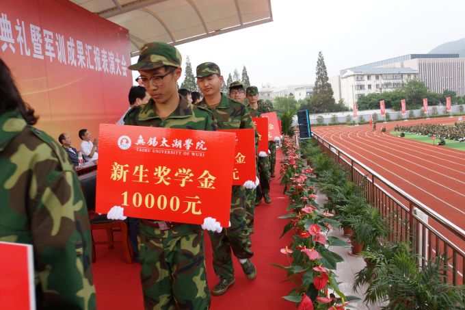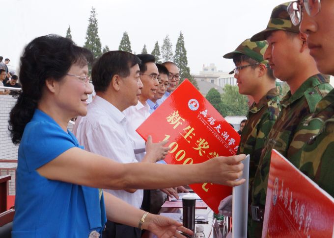 副校长何宏金宣读2017级新生军训表彰决定并主持开学典礼。大会对9个军训先进集体、77名军训优秀标兵予以颁奖表彰;并表彰了2017级优秀新生。校党委副书记丁涛宣读优秀新生奖励决定,对28名超过江苏省一本分数线的新生,每人发放10000元优秀新生奖学金;对考分在320分以上的71名新生,每人发放3000元优秀新生奖学金。