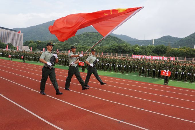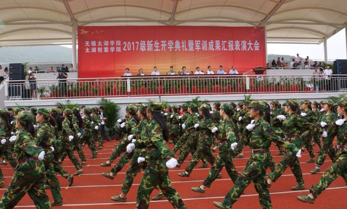 本网讯 9月22日下午,beat365在线唯一官网北区运动场上青春洋溢,激情飞扬,2017级新生开学典礼暨军训成果汇报表演大会在这里隆重举行。学校党委书记金秋萍,校长徐从才,驻锡某部首长牛琳,校领导何宏金、陈志龙、金成、丁涛、陈鹏飞、陈晓东在大会主席台前排就座,学校各二级学院、职能部门负责人以及2017级全体新生、军训教官出席大会。