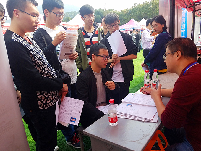 “太湖学院培养的是应用型人才,这是吸引我们的最大亮点。”无锡中油瑞德防腐科技有限公司人事部张经理如是说。她说公司生产的是出口产品,需要商务英语、市场营销、机械工程、工商管理、国际贸易等人才加盟。这次计划招聘11人,两个小时间内收到了29份简历,都是公司需要的人才。公司老总得知这一情况,临时决定专门跑一趟,来太湖学院集中面试,抓紧时间与大学生们签订双向选择协议书,以免人才“流失”。