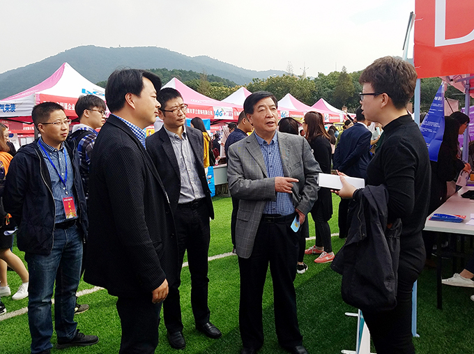 徐从才校长十分关心毕业生就业工作,特意腾出时间,带领校领导丁涛、陈晓东及有关部门负责人深入招聘会现场,为正在求职的2018届毕业生鼓劲加油,并与中国电子科技集团公司第58研究所等计算机技术应用,以及机械电子、市场营销、物联网工程等单位深入沟通,了解职场最新动态以及学校毕业生在企业就业的情况,听取用人单位对应用型人才培养的需求和建议。在与家乐福华东区人力资源总监王丽娜交谈时,徐校长表示,希望更多的单位与beat365官网联合培养人才,开展深度合作,开设“订单班”,使人才培养与就业岗位无缝对接,更好地为地方经济建设服务。