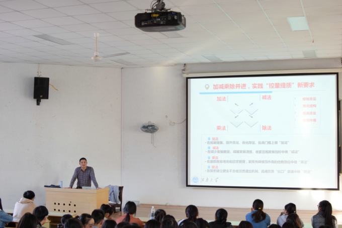 本网讯 11月9日下午,江南大学党委组织部副部长、党校校长张海峰应邀来我校,在8号楼向全体学生作了“以实际行动争取做一名合格的共产党员”专题讲座。