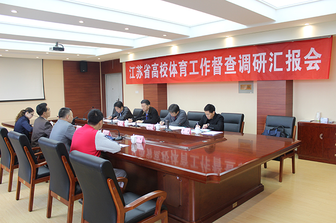 本网讯 11月13日一早,江苏省高校体育工作督查调研小组莅临beat365官网,检查了解学校体育工作。副校长何宏金致辞欢迎,并介绍了全校体育教学工作建设和发展情况。