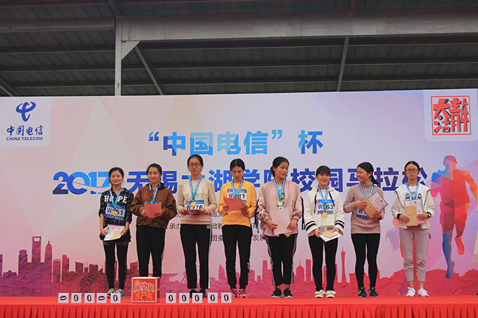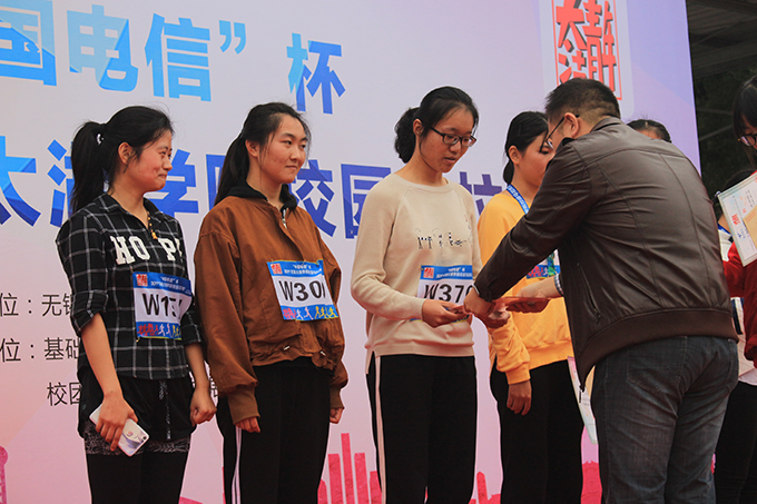 比赛结束,董志强院长、中国电信无锡滨湖分局夏局长为获胜的男女前八名颁奖,其余参赛同学均获得校园马拉松竞赛纪念奖牌,教职工选手获得一份精美礼品。
