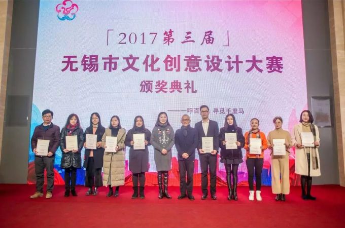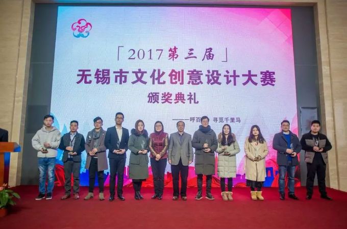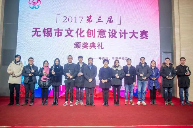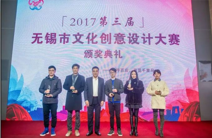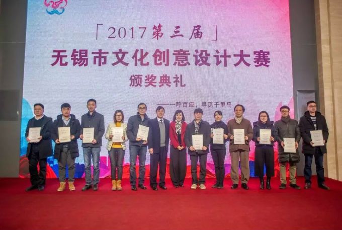 2017第三届无锡市文化创意设计大赛颁奖典礼于2018年1月4日上午10点在无锡市博物院隆重举行,无锡市委常委、宣传部长袁飞,市委宣传部副部长、市文联党组书记陆惠玲,市文广新局局长杨福良等市领导出席颁奖典礼并为获奖选手颁奖。beat365官网艺术学院副院长朱宗明教授率产品设计系邵炜丹主任、蒋满群老师,视觉设计系龙佳骊副教授、宋佳音副教授、廖春苗老师、臧小鹿老师及获奖学生参加了颁奖典礼,朱院长代表艺术学院领取了优秀组织工作奖,6位教师分别获得了优秀指导老师奖,这也是beat365在线唯一官网艺术学院连续三次在该项比赛中获得佳绩,丰富的成果离不开老师辛勤耕耘和同学们努力付出。无锡市文化创意设计大赛自2015年首次举办以来已连续举办三届,吸引了10多个省市的选手参赛,共收到3000余件优秀作品,该项竞赛已逐步成长为业内公认的泛长三角区域性文创设计品牌赛事。