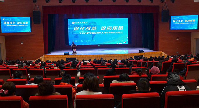 赴合肥学院考察学习团,有副校长何宏金、王心如,各二级学院院长、分管教学副院长,人事处、教务处等部门和各系、教研室负责人等55人。赴教育部评估中心培训会的有副校长何宏金、金成,党委副书记丁涛,各二级学院院长,教务处、评建办和人事处有关人员一行19人。在交流会上,人事处副处长吴学林、教务处处长郭富强,会计学、物联网、视觉传达等三位专业负责人吴婷、姚湘、陈玮,会计学院院长唐建荣,物联网工程学院院长惠晶分别发言,交流学习合肥学院办学经验的感悟,纷纷结合自身工作实际谈体会、谈启发、谈创新。