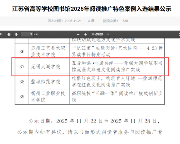 此次案例入选是对学校创新文化传承路径的充分肯定。下一步,学校将以此为契机,持续深化青年大学生与中华优秀传统文化元素的有机融合,积极推动非遗体验与数字技术深度融合,探索开发AR古籍互动等新型文化场景。(供稿:图书馆)