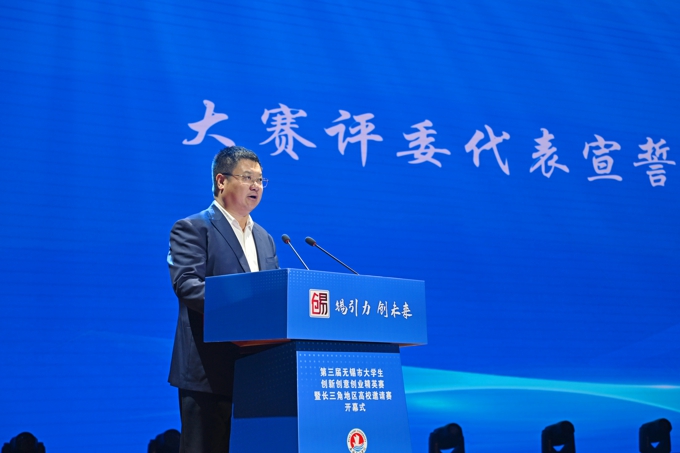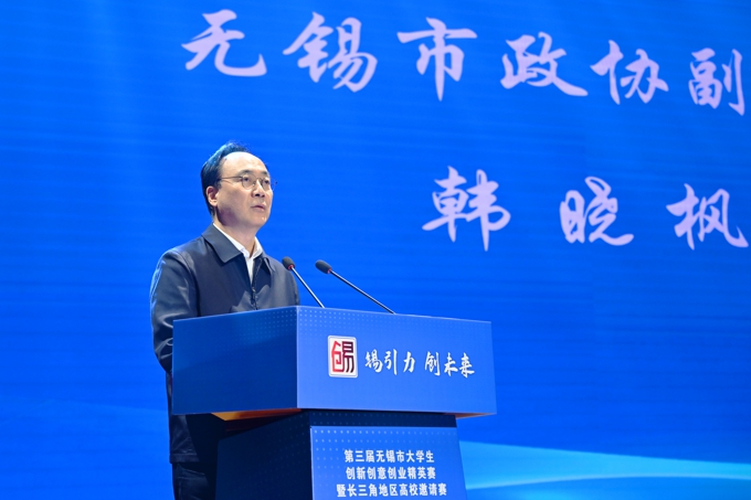 韩晓枫在致辞中指出,近年来无锡紧紧围绕新质生产力发展方向,全力构建“465”现代产业体系。他强调,大赛是全面提升大学生创新创业能力、搭建大学生创新创意创业项目与社会资源对接的平台,是在苏锡常都市圈具有一定影响力和吸引力的高质量高水平赛事。他呼吁高校师生与企业立足科技前沿、贴近产业实际,用智慧点亮未来,用技术改变生活,用创新回应时代之问,勇于实践、敢于探索,在无锡这片热土上成就梦想、为城市发展作贡献,以创业书写青春担当!