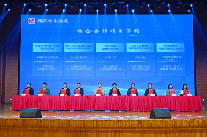 开幕式上,主办单位代表为近两届大赛150多个创业项目中遴选出的30个优秀项目颁发了荣誉证书;为19个“无锡市高校产教融合示范专业”授牌;为12位经验丰富的创新创业专家颁发导师聘书。同时,学校、江南大学等5所在锡高校与浙江清风源环保科技有限公司、韩国TCK会社等5家优秀企业签订了校企合作协议。大赛评委代表与参赛选手代表分别宣誓,承诺公平评审、诚信参赛。(供稿:党委宣传部)