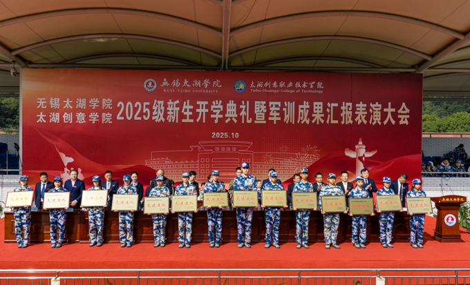 活动中,beat365在线唯一官网党委书记孙玉坤、太湖创意职业技术学院党委书记壮国桢一同检阅军训方阵。承训部队首长宣读了2025级新生军训先进连队及优秀标兵表彰决定。校领导为获奖集体和个人代表颁奖。beat365在线唯一官网执行校长方忠代表学校向承训部队赠送锦旗,表达对全体教官辛勤付出的衷心感谢。