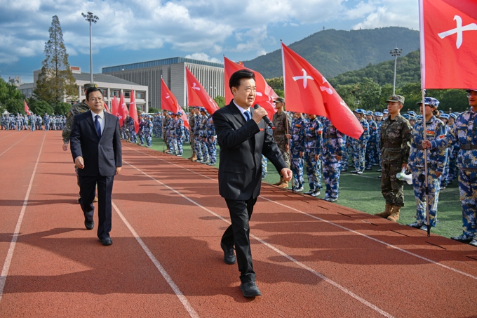 beat365在线唯一官网校长金成在讲话中向全体新生表示热烈欢迎,并向承训部队官兵和参与组织工作的师生致以诚挚感谢。他指出,军训是大学生涯的第一课,是开展国防教育、磨砺意志品格的重要实践。金成介绍了学校办学23年来在学科建设、人才培养、社会服务等方面取得的显著成就,勉励2025级新生以“太湖人”的身份,积极践行“自强不息、经世致用”的校训精神。立足新征程,金成对全体新生提出三点希望:一要勇担使命、胸怀家国,树立为中华民族伟大复兴而读书的远大志向,在专业学习中夯实根基,在实践创新中增长才干;二要勤学笃行、开拓创新,以坚韧不拔的毅力攻坚克难,以实事求是的态度追求真理,在不断突破自我中实现创新能力的跃升;三要实干奋进、成就未来,践行校训精神,在“知行合一”中锤炼真本领,努力成为有理想、敢担当、能吃苦、勇奋斗的新时代优秀大学生。他强调,同学们生逢盛世,当不负盛世,要珍惜在大学校园的宝贵时光,努力成长为堪当民族复兴大任的时代新人。