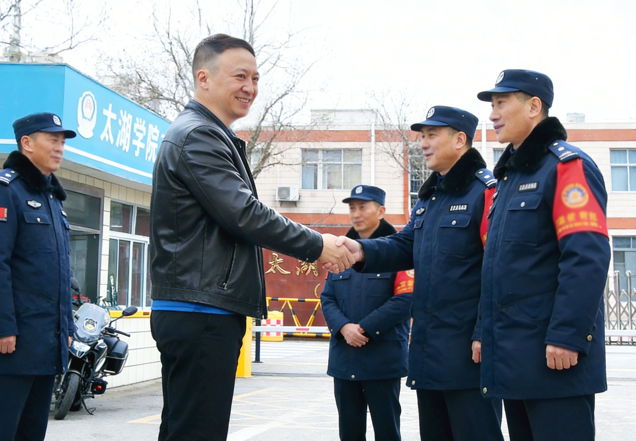 农历马年春节,旭日把阳光洒满太湖学院校园。上午十时,金成校长来到学校北大门,向在节日坚守岗位的6名门卫安保人员逐一送上慰问:“大家辛苦啦!我代表学校向大家拜年啦!” 热情的话语,亲切的交谈,顿时让宁静的校园热络起来。