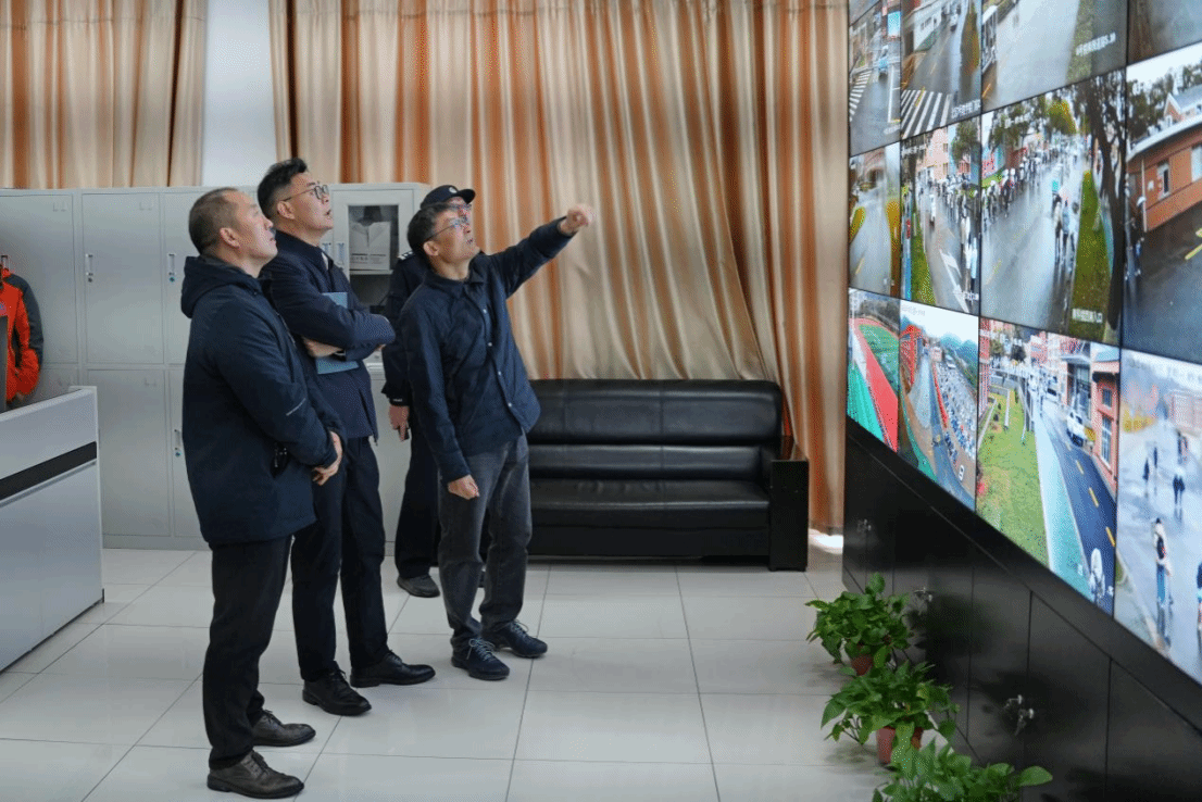 检查组一行采取“四不两直”方式,先后实地走访北大门门岗、北区电动车停车棚、工科楼监控室、消控室、商业街、六号行政楼心理中心等重点场所。在北大门门岗,详细询问外来人员及车辆登记流程,检查防爆器材配备与一键报警系统运行情况;在工科楼监控室和消控室,查看监控设备覆盖范围、值班记录及应急处置预案;在中区商业街,重点核查商铺食品安全、消防设施配置;在心理中心,了解学生心理健康服务体系建设与危机干预机制。