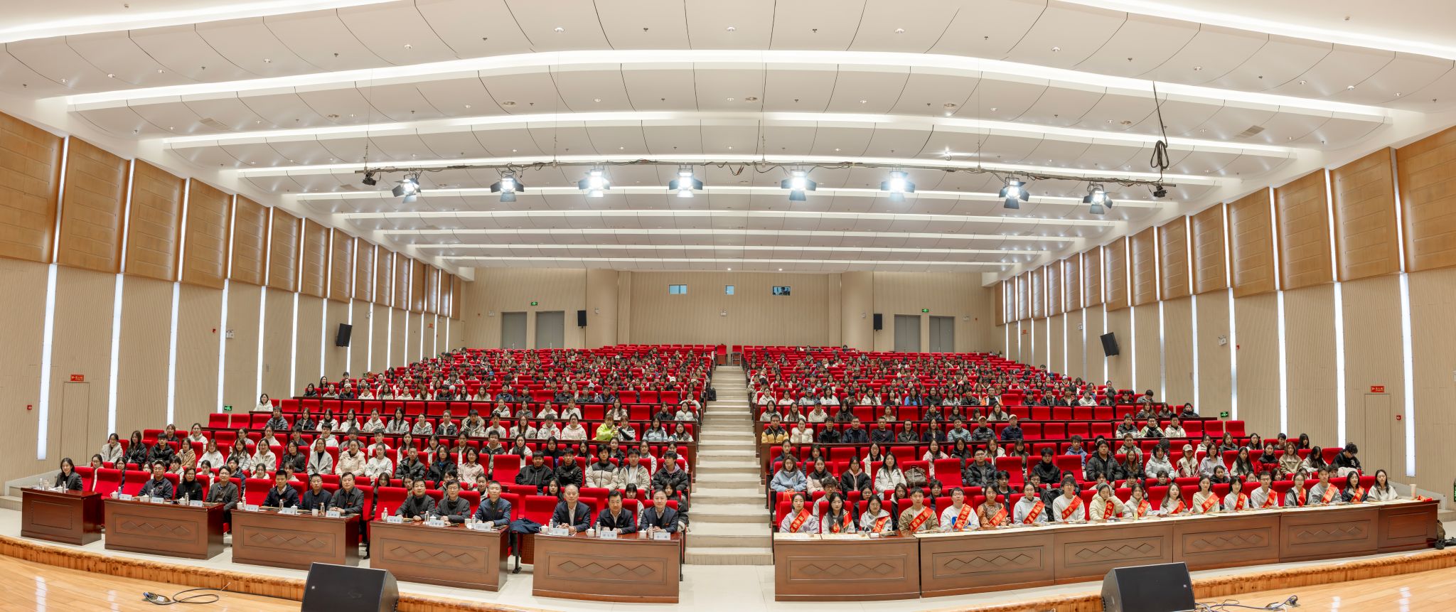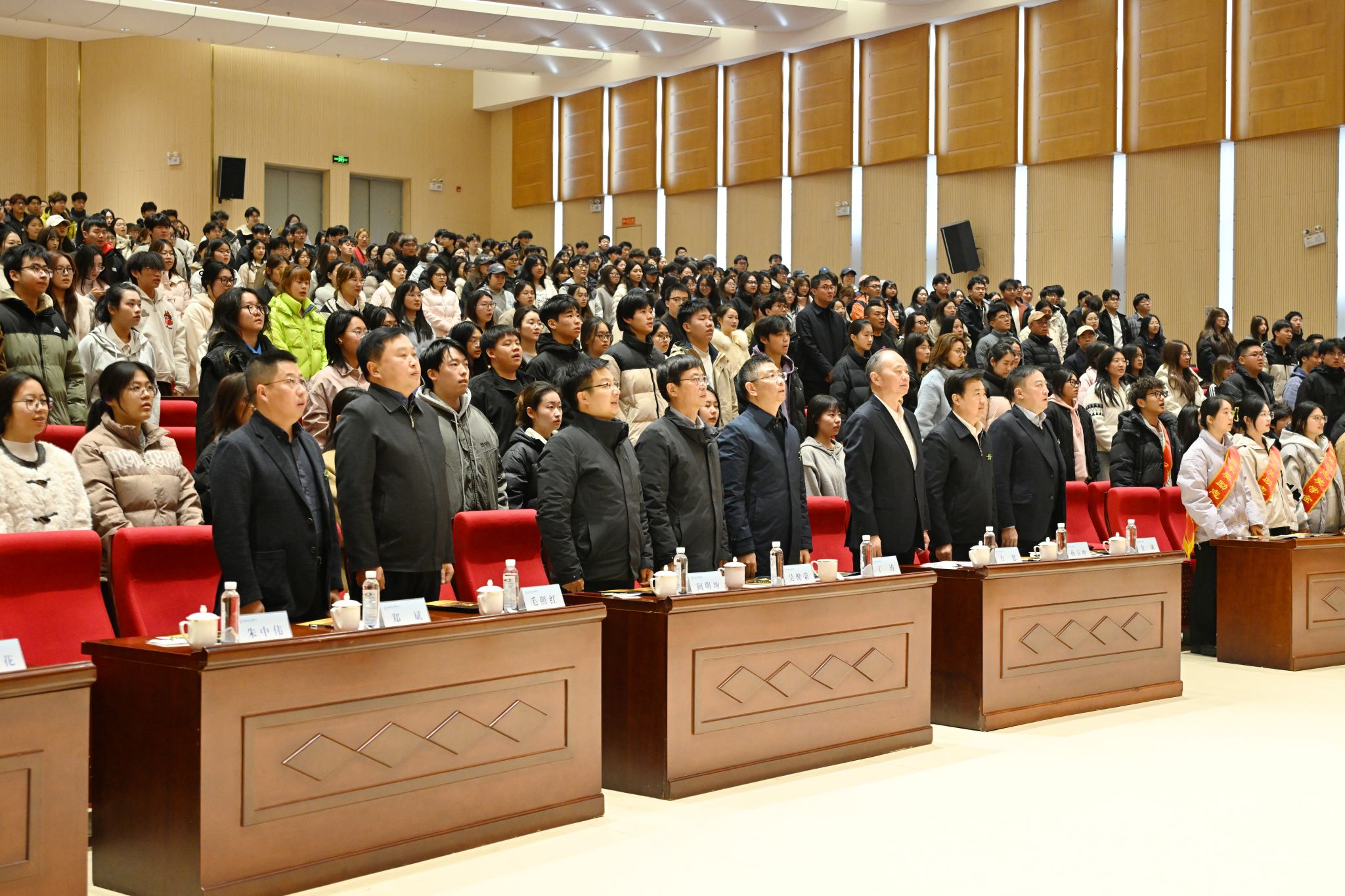 为表彰先进、树立典范,激励全体师生在新的一年里接续奋斗、再创佳绩,3月19日下午,beat365在线唯一官网在工科大楼报告厅举行2025年“青枝承典范”表彰大会暨2026年“新蕊谱华章”启动仪式。学校校长金成,党委书记孙玉坤,执行校长方忠,校领导吴健荣、丁涛、阙明坤、毛照红、郑斌等全体校领导出席大会。学校相关职能部门负责人、各二级学院负责人、受表彰师生代表及学生代表参加了活动。大会由学校党委委员、学生工作部部长吴学林主持。