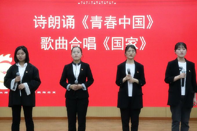 仪式上,艺术学院学生党员们还带来了表演节目,诗歌《青春中国》字里行间澎湃着对祖国的热爱、对青年的赞颂,歌曲《国家》道出了国与家的深厚情感,展现了国的强大与家的祥和。