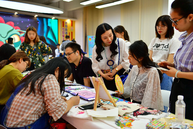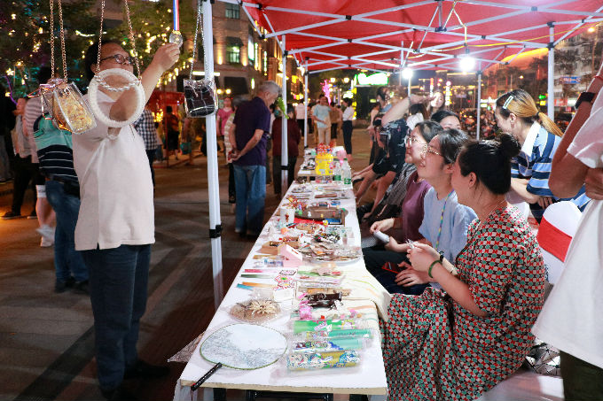 溪南公馆广场前艺术学院网络社团文创产品售卖现场
