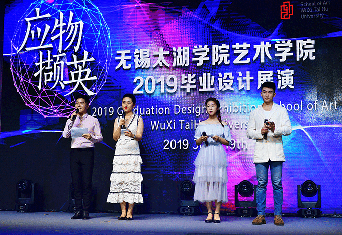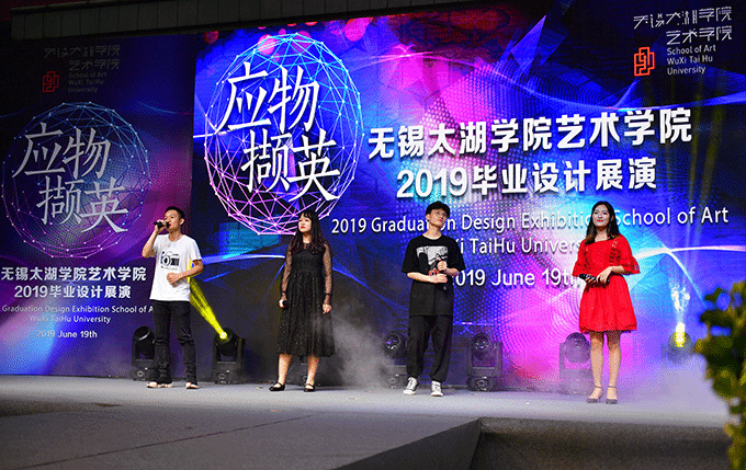 本网讯 2019年6月19日下午6:30,六号教学楼前广场,一年一度的应物撷英——艺术学院毕业设计汇演隆重举行。beat365在线唯一官网副校长何宏金、王心如,图书馆副馆长刘文社,招生就业处副处长张国华等领导嘉宾出席了当晚活动。