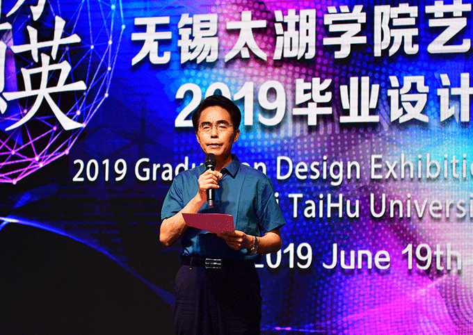 艺术学院朱宗明副院长代表艺术学院向来宾们致感谢词,并对19届毕业生寄予殷切期望:“四年前你们来到太湖学院,走上艺术的人生之路。今天我们要继续地祝福你们,努力迈好人生的艺术步伐,学院永远为你们自豪!”