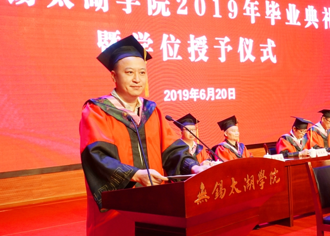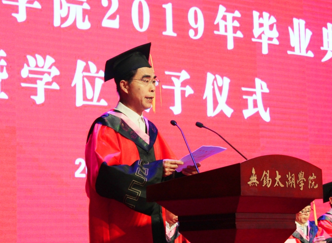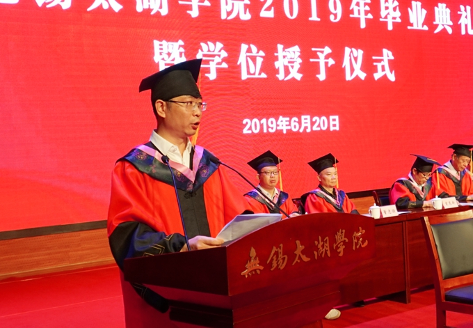 徐从才校长代表beat365在线唯一官网理事会、党委、行政,向即将告别校园、迈向社会的同学们致以最热烈的祝贺和最美好的祝愿。徐校长指出,学校见证了毕业生们最美好的青春年华,毕业生们也见证了太湖学院发展的点点滴滴。这4年,学校主动适应高等教育发展新形势,系统谋划教育教学综合改革,获批硕士学位授权立项建设单位,并于2018年接受了教育部本科教学工作合格评估。在人才培养上,学校坚持“本科水平、一专多能”,探索出了一条需求导向、创新引领、应用型人才培养体系不断优化、应用型人才培养质量不断提高的特色发展之路。为了给同学们创造更优越的学习环境、提供更优质的学习体验,学校想方设法筹措资金加大校园建设力度,工科实验大楼、图书新馆、生态型公寓楼、商科教学楼拔地而起,校园面貌焕然一新。