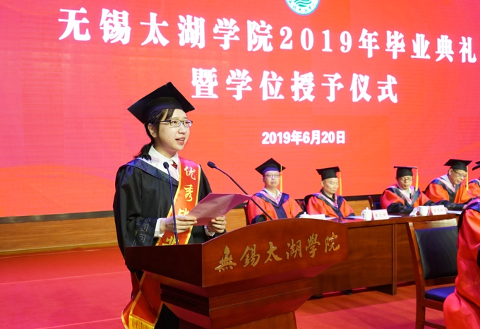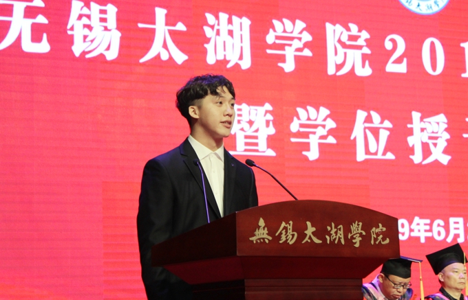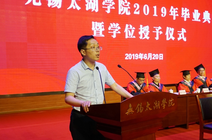 教师代表商学院张天明老师在发言中,对2019届毕业生顺利完成学业表示衷心祝贺,期盼毕业生们不断创造人生的辉煌奇迹,谱写青春的绚丽诗篇。“希望大家常回家看看,太湖学院永远是你们的‘快乐老家’”。诚挚的话语表达了老师们既为毕业生的成才而欢呼雀跃,又为其即将远离而依依不舍。