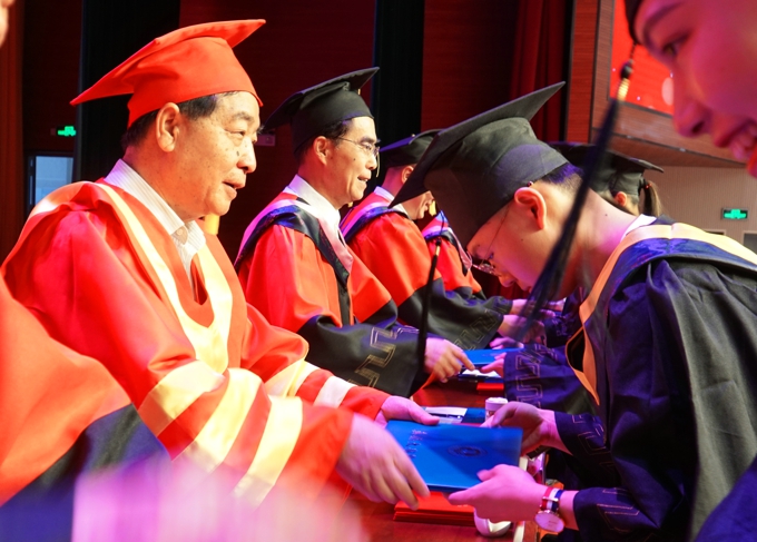 徐校长对毕业生们提出三点希望,一是志存高远,坚定理想信念。习近平总书记说过,“全国广大青少年要志存高远,增长知识锤炼意志,让青春在时代进步中焕发出绚丽的光彩”。一个人的志向,决定了他的思维和行动。对于即将踏上人生新征程的毕业生们,无论身处何地、从事什么岗位,都要追求卓越,努力拼搏,为国家发展和社会进步做出贡献,将实现个人价值与承担社会责任有机结合起来,将个人的命运与中华民族的复兴有机结合起来,实现小我与大我的完美统一,为实现中国梦贡献青春力量。二是脚踏实地,永葆坚毅之心。他希望同学们今后不论是走向社会还是继续深造,既不要做不落地的空想者,也不要做自我催眠的幻想者,而要做脚踏实地的行动者,立足本职、埋头苦干,以一种“士不可以不弘毅”的坚毅品格和持久定力,用奋斗为青春涂上最鲜亮的底色。三是开拓创新,勇立时代潮头。纵观世界发展史,人类的一切文明成果,都是创新思维的胜利果实,都是创新智慧的结晶。创新是一个国家、一个民族发展的重要源泉,是推动人类社会进步的不竭动力,青年人是推动创新的最重要力量。牛顿和莱布尼茨发现微积分时分别是22岁和28岁;爱因斯坦提出狭义相对论时是26岁;《共产党宣言》发表时马克思是30岁,恩格斯是28岁……自古英雄出少年,他希望同学们要以敢为人先的锐气,开拓创新,做别人没有做过的事,走前人没有走过的路,积极抢占未来科技创新的制高点,勇立新时代潮头!