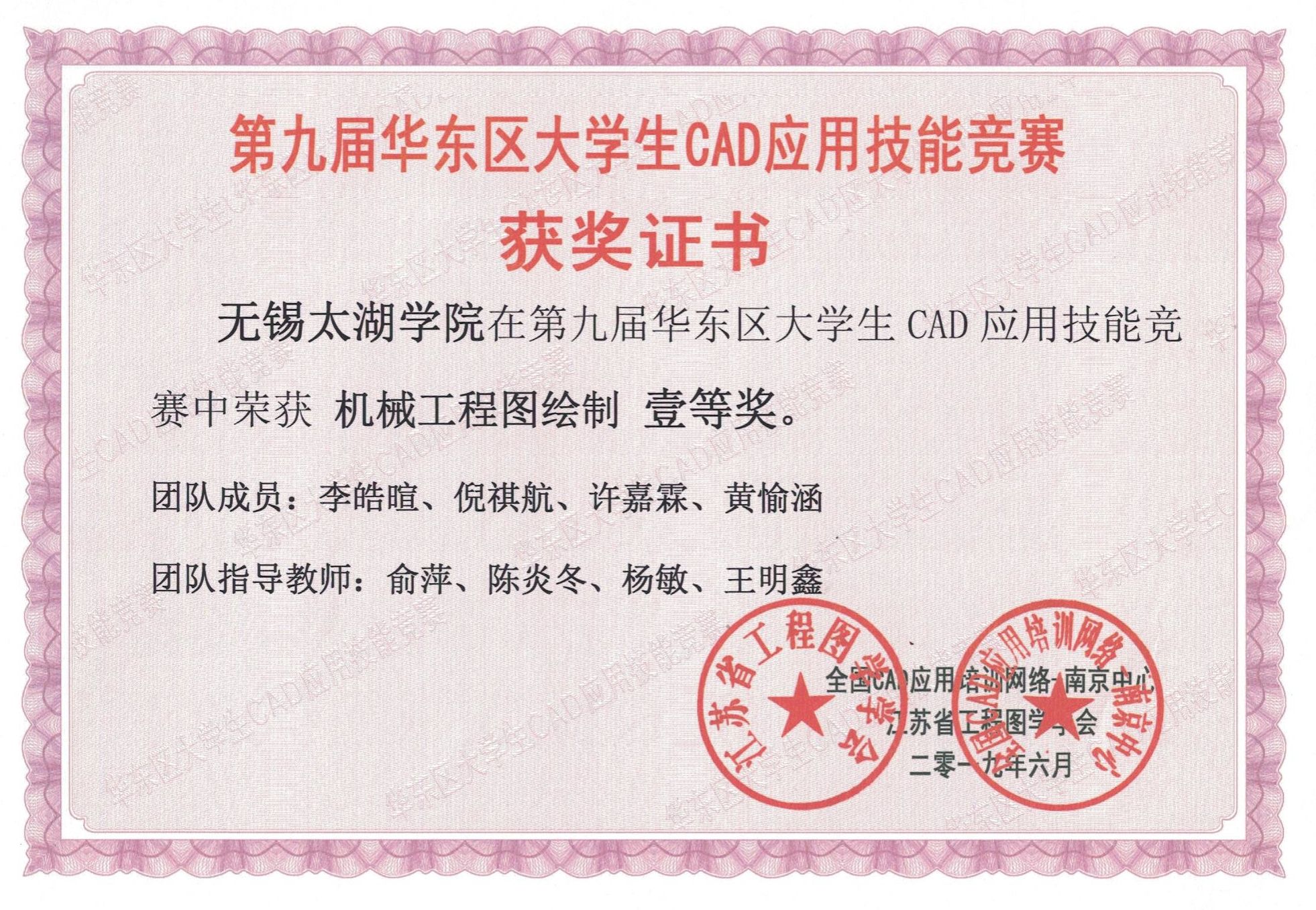 本网讯 近日,由全国CAD应用培训网络、江苏省图学协会主办,南京农业大学工学院承办的“第九届华东区大学生CAD技能应用竟赛”落下帷幕。beat365官网机电工程学院36名学生经过一学年的努力备战,在指导老师俞萍、陈炎东的带领下参加了此次竞赛,取得了优异成绩,其中,二维机械工程图绘制更是取得了100%获奖的佳绩。