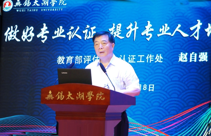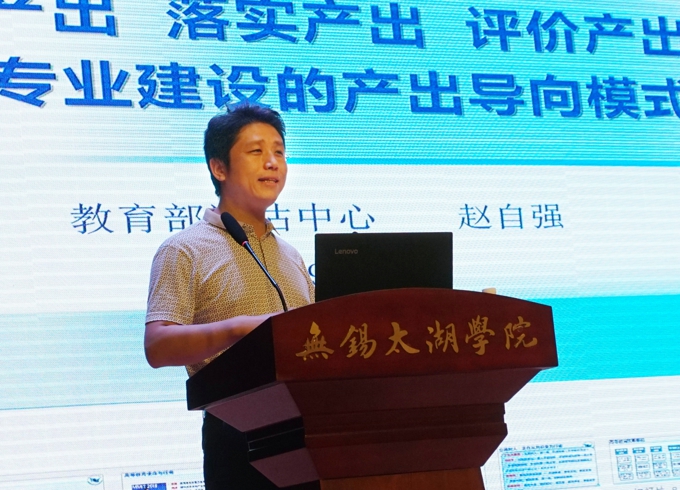 赵自强副处长从“我们为什么需要专业认证”“我们如何推动专业认证”“我们如何用好专业认证”三个方面阐述了专业认证对推动构建面向产出的教学评价机制的重要性。他介绍说,从当前高等教育的改革举措来看,质量保障与优化专业结构、优化类型结构、创新创业教育、协同育人一起,成为推动高等教育改革的重要一环,其中,专业认证也是重要的组成部分。由此,赵自强提出应对高等教育改革发起“六问”,即“改革方向是否正确?改革理念是否先进?质量标准是否明确?教师责任是否落实?过程条件是否挂钩?质量保障是否健全? ”