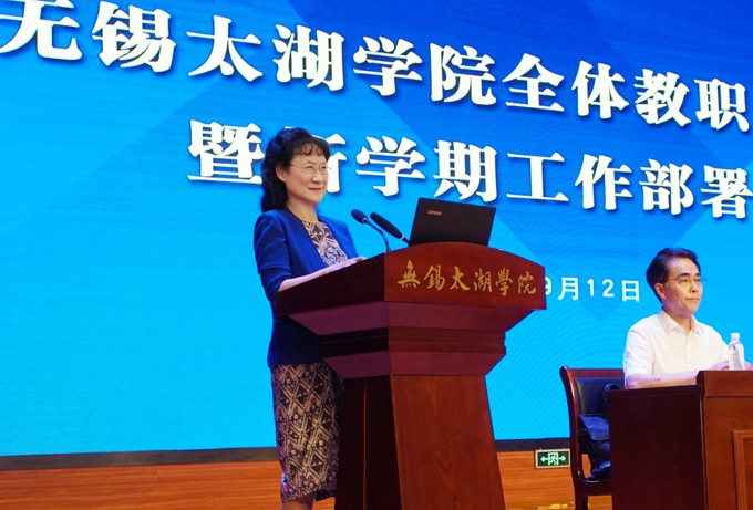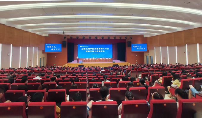 本网讯 奋进迎华诞,砥砺守初心。9月12日下午,beat365在线唯一官网召开全校教职工大会暨新学期工作部署会。学校理事长、党委书记金秋萍部署2019年下半年党建工作,校长徐从才部署2019年下半年行政和教育教学工作。学校常务副校长李廉水,校领导何宏金、王心如、金成、丁涛、陈鹏飞、陈晓东,全校教职工出席会议。会议由副校长何宏金主持。