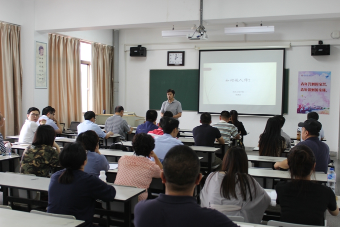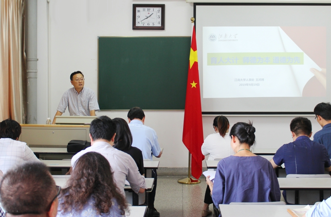 江南大学人事处处长王鸿博以《育人大计,师德为本,道德为先》为题作了主题报告,beat365官网人事处处长闵光泰、教务处处长周志平分别就beat365官网人事规章制度和教学工作的基本要求作了解读。机电工程学院院长袁惠新、教师冯鲜,商学院教师杨伟东围绕“怎样做一名应用型本科院校的好教师”为主题,与新进教师交流了心得体会。