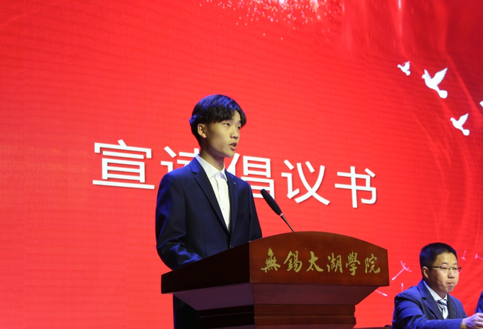电信1902班的吴子睿同学作为学生代表宣读了《优良学风建设倡议书》。他向全体在校学生发出倡议,行动起来吧,让我们为学风建设贡献自己最大的力量!为营造更好的学习生活氛围共同努力!