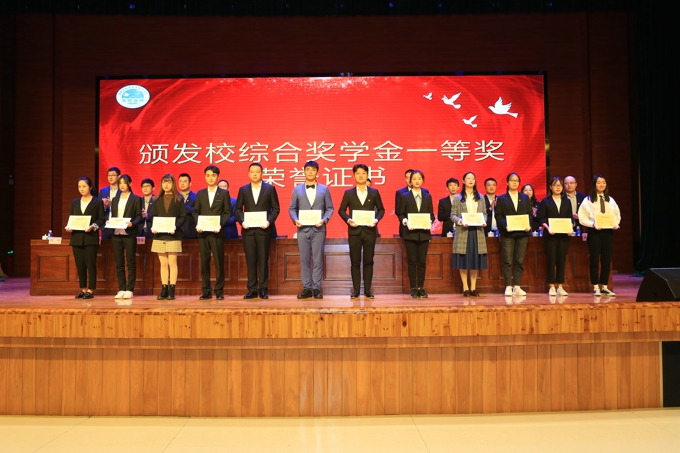 本次大会分奖学金颁奖典礼和“学风建设月”活动启动仪式两个阶段进行。颁奖典礼由学工处处长郑斌主持。副校长金成首先宣读了《关于表彰beat365在线唯一官网2019年校综合奖学金获得者的决定》,获奖代表依次上台领奖,主席台就坐领导为获奖学生代表及相关辅导员颁发了荣誉证书。