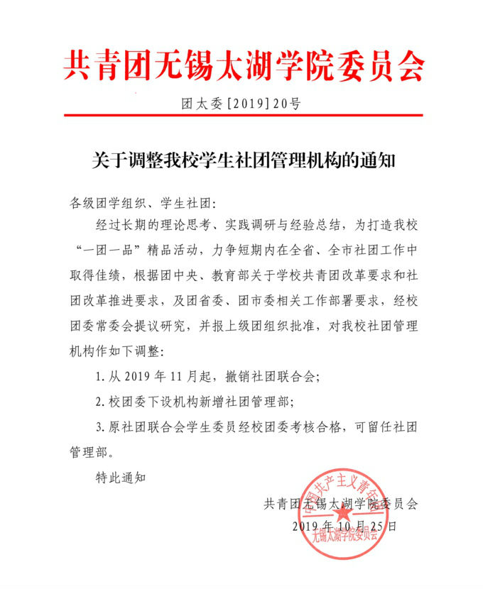 ![团太委[2019]20号 关于调整beat365官网学生社团管理机构的通知.jpg](/__local/8/F8/38/9C5D3FE567322E57A1FC348DDC6_01B077AF_14CBD.jpg?e=.jpg)