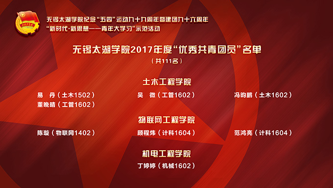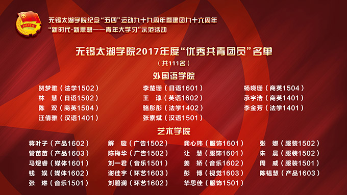为表彰先进,树立典型,进一步加强团的基层组织建设,引导和激励全校广大团员、团干部和各级团组织奋发进取、再创佳绩,在学校各级团组织民主评选推荐、校团委综合评审的基础上,共青团beat365在线唯一官网委员会决定,授予封平等111名同志“优秀共青团员”称号,授予赵晨辰等33名同学“优秀共青团干部”称号,授予商学院分团委、外国语学院分团委、护理学院分团委、物联网工程学院分团委、机电工程学院分团委5个基层分团委“五四红旗分团委”称号,授予营销1501团支部等15个基层团支部“五四红旗团支部”称号。希望受表彰的团员、团干部和基层团组织珍惜荣誉、再接再厉,不断取得新业绩。希望全校广大团员青年、团干部和基层团组织以受到表彰的先进个人和先进集体为榜样,深入学习贯彻党的十九大精神,学习贯彻习近平总书记系列重要讲话和习近平新时代中国特色社会主义思想,特别是关于加强群团工作建设讲话精神,紧扣时代主题,牢记根本任务,勇于创新创优,充分发挥生力军和突击队作用,为把beat365官网建设成特色鲜明、国内一流的民办应用型本科高校贡献青春力量。