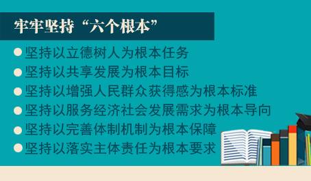 这里我要特别强调今年工作的两个基本原则。 一是稳中求进。不稳难言进,有进才更稳。稳中求进是治国理政重要原则,也是做好教育工作的方法论。今年是党的十九大召开之年,为党的十九大胜利召开营造良好氛围,是教育系统各级党组织、广大党员干部和师生员工的重大政治责任。对教育工作而言,稳,就是系统局面稳定,改革推进有序,政策衔接连贯;进,就是关键领域改革有新突破,内涵发展有新成效,群众满意有新提升。稳中求进,不是无所作为,不是不敢作为,而是要在把握好度的前提下奋发有为。要按照守住底线、突出重点、完善制度、引导预期的思路,深入细致做好工作,深入细致研判形势,深入细致防患未然,扩大人民群众获得感,维护社会和谐稳定。 二是内涵发展。质量决定生存。十八届五中全会在“十三五”时期我国发展指导思想中明确提出“以提高发展质量和效益为中心”,具体到教育,特别强调要“提高教育质量”。我们要真正把内涵发展作为筹划工作、推进工作、检查工作的重要原则,把工作思路、政策措施、条件资源从外延转到内涵上来。总的来说,就是工作围绕质量做,以质量牵引数量;投入围绕结构调,以结构支撑功能;资源围绕内涵配,以内涵链接外延;政策围绕公平定,以公平促进效率;规划围绕目标定,以目标统揽全局。要坚持进度服务质量,硬件软件相互匹配、同步提升,不做超越阶段的事,不做违背规律的事,不做政绩冲动的事,不求急功近利,不求轰动效应,不求表面之功。 (一)坚持以立德树人为根本任务,培养中国特色社会主义合格建设者和可靠接班人 在前不久召开的全国高校思想政治工作会议上,总书记强调高校思想政治工作关系高校培养什么样的人、如何培养人以及为谁培养人这个根本问题,指出高等教育肩负着培养德智体美全面发展的社会主义事业建设者和接班人的重大政治任务,必须坚持正确政治方向。教育战线要全面落实总书记重要讲话精神,落实好立德树人这一根本任务。 把坚定理想信念作为第一任务。“革命理想高于天”。要教育引导广大青少年继承革命传统,传承红色基因,大力弘扬中华优秀传统文化和革命传统文化、社会主义先进文化,深化党史、国史、改革开放史和社会主义发展史学习教育。要深化宪法教育,落实好《青少年法治教育大纲》,健全法治教育的体制机制,充分发挥法治的育人功能。今年要发布《中小学德育工作指南》,推动各地各中小学校完善德育工作体系,启动实施高校大学生思想政治教育质量提升工程,增强思想政治教育亲和力和针对性。教材体现国家意志,要改革完善教材管理体制,切实保证教材的正确政治方向和价值导向。抓紧推进义务教育道德与法治、语文教材后续册次编写审查,全面推进三类特殊教育义务教育阶段教材编写。加快普通高中课程教材修订工作,启动普通高中思想政治、语文、历史教材工作。 把促进身心健康作为第一要求。牢固树立健康第一的教育理念,帮助学生养成终身锻炼的习惯,掌握一两项终身受益的技能。推动校园足球蓬勃发展,带动学校体育改革。要改进美育教学,以开齐开足美育课程为重点,整合各方资源充实教学力量,改善美育设施,提高学生人文素养和审美情趣。要高度重视学生心理健康问题,关注学生情感需求,加强心理咨询服务,创造学生健康成长、快乐成长的良好氛围。最近,校园欺凌问题时有发生,损害了学生身心健康,造成了不良影响。必须加强教育预防、依法惩戒和综合治理,促进家校联动,让孩子们健康成长。 把知行合一作为第一原则。实践是培养人的主要途径,要将教育与生产劳动和社会实践相结合,以知促行、以行促知,学以致用。积极开展中小学生研学旅行活动,今年要启动中小学研学旅行营地建设工作。推进中小学社会实践基地建设,加强资源开发,为学生参加社会实践提供专门场地、专业指导、专题教育。深入做好学生志愿服务,将志愿服务成效作为综合素质评价重要内容,作为毕业升学重要参考。 (二)坚持以共享发展为根本目标,扩大教育公平受益面 要清醒认识到,广大人民群众对共享教育改革发展成果的诉求从未像今天这样迫切。多年来,我们一直把促进公平作为国家基本教育政策,今后的任务是加快抬高底部、加快补齐短板、加快完善规则,在更大范围、更高层次、更深程度上实现教育公平。 在加快发展基础上,提升学前教育普惠水平。2010年以来,国家连续实施两期三年行动计划,学前教育资源加速扩大,入园难问题初步缓解。但学前教育仍然是各级各类教育中的薄弱环节,普惠性资源依旧不足,幼儿园运行保障和教师队伍建设等相对滞后,保教质量参差不齐,特别是广大农村地区尤其薄弱。下一步,要启动实施第三期学前教育行动计划。一抓公益普惠。大力发展公办幼儿园,积极引导和扶持民办幼儿园提供普惠性服务。中央财政安排专项奖补资金,支持地方扩大普惠性资源。二抓保教质量。推进各地完善幼儿园质量评估体系,完善教师队伍建设保障体系,加强学前教育教研力量,强化对各类幼儿园特别是薄弱园的专业指导。 推动义务教育向高位优质均衡发展。义务教育均衡发展的工作重点是从基本均衡向优质均衡升级,从外延均衡到内涵均衡升级。今年要同步抓好三项工作。一要补齐短板,贯彻落实好国务院《关于统筹推