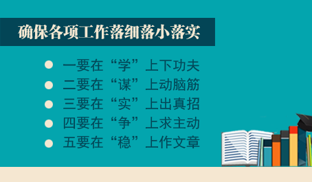 中央对教育改革发展提出了一系列新部署新要求,要聚焦聚力、抓紧抓实,圆满完成各项任务,向党中央交上一份满意答卷,为党的十九大胜利召开献礼。