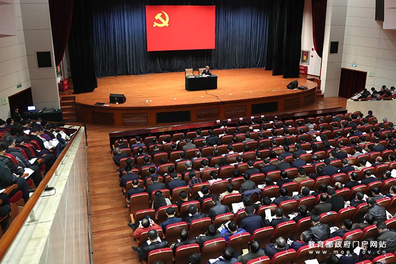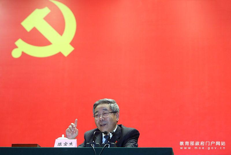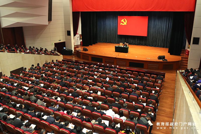 为贯彻落实中央关于切实学懂弄通做实十九大精神的要求,进一步将学习宣传贯彻十九大精神引向深入,11月16日,教育部党组书记、部长陈宝生就学习贯彻十九大精神为教育部直属机关党员讲专题党课。 (中国教育报记者 樊世刚/摄)